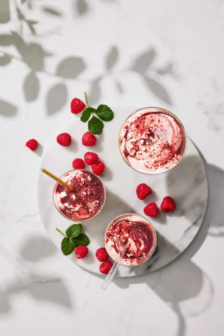 A SMOOTH, CREAMY & NUTRITIOUS BLEND OF RASPBERRIES & BANANAS.